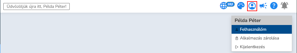 A felső menüsáv jobb oldalán, a fentebb látható képen található ikonra, majd a Felhasználóm gombra kattintva érheti el a fiókjához kapcsolódó beállításokat.